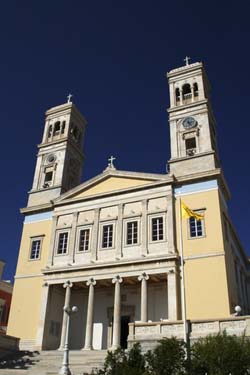 Ermoupolis, "Queen of the Cyclades", is the capital and main harbour of Syros. It is also without doubt the capital of all the Cyclades. Ermoupolis stands on a naturally amphitheatrical site, with neo-classical buildings, old mansions and white houses in the island style cascading down to the harbour. The centre of the town, where Miaouli Square stands ringed with cafes, has a grandeur all its own.