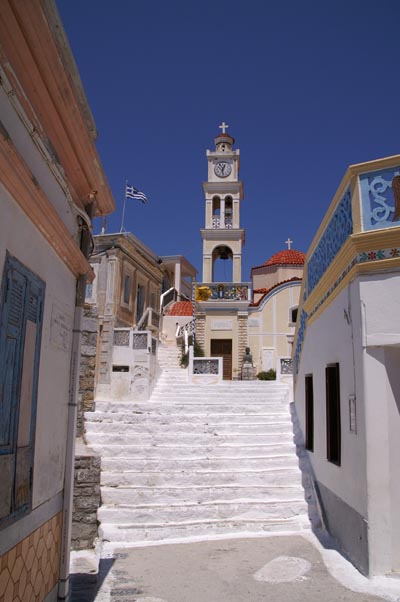 This second largest island of the Dodecanese chain lies between Rhodes and Crete. It is rather rectangular in shape and its terrain is mountainous, the highest peak being Kali Limni at 1,214 metres above sea level. Most of its settlements are to be found on its south coast, which is relatively flat.
